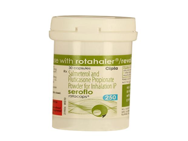Advair Rotahaler, containing Fluticasone Propionate, is a prescription medication used to control symptoms of asthma and COPD. It works by reducing lung inflammation and opening the airways for easier breathing. The device delivers the medication as a dry powder directly into the lungs. Regular use helps prevent breathing difficulties and improves long-term respiratory function.